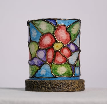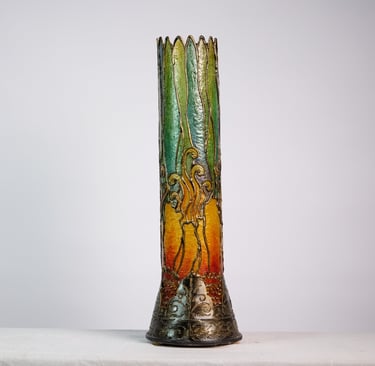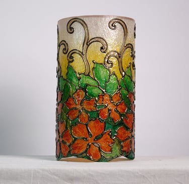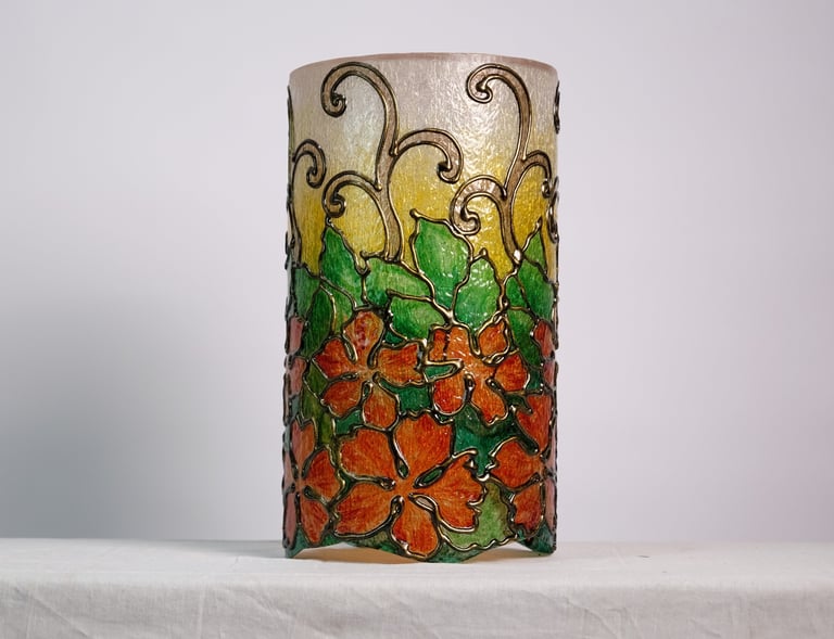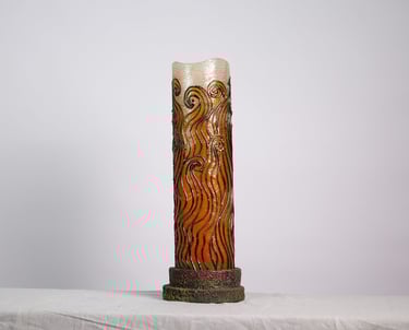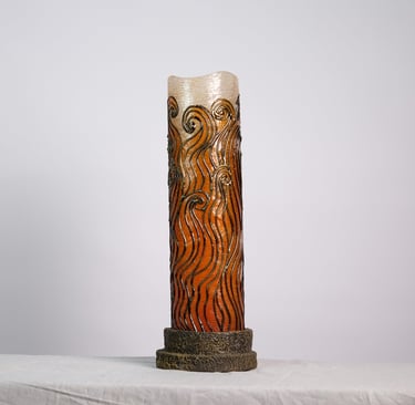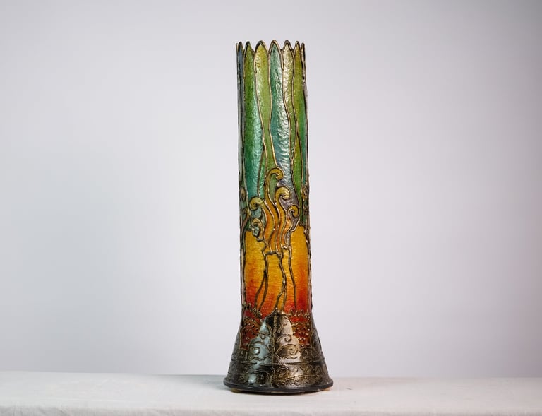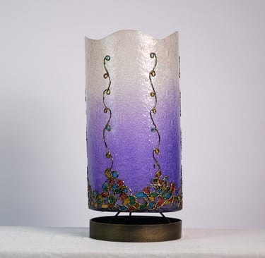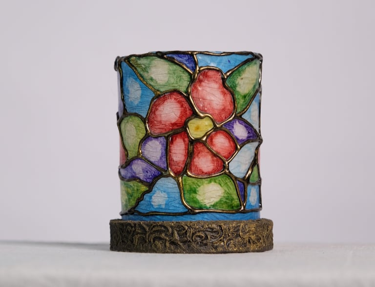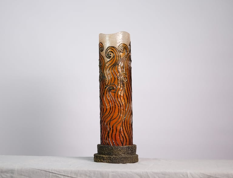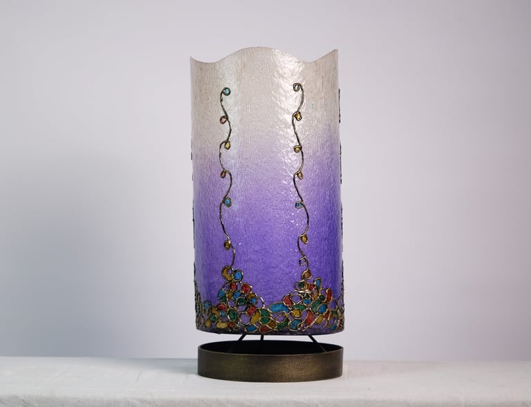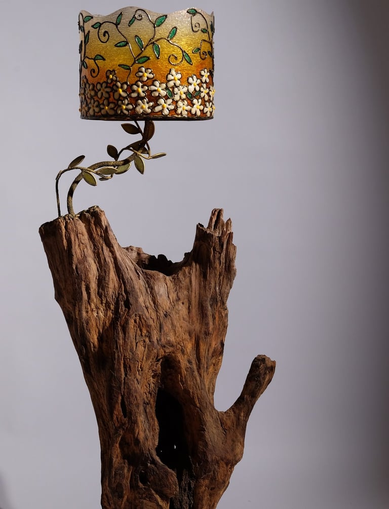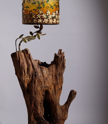 Handcrafted lamps blending wood and mosaic.