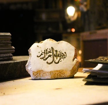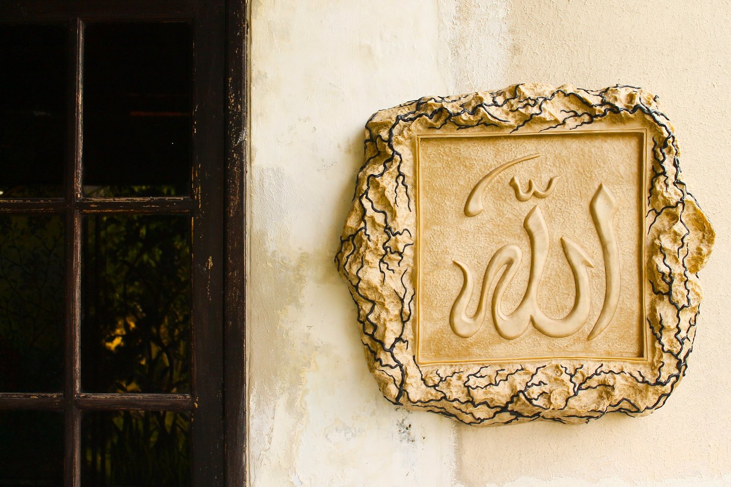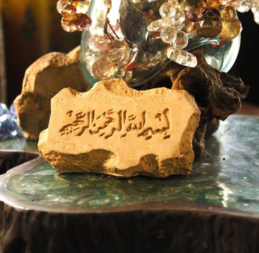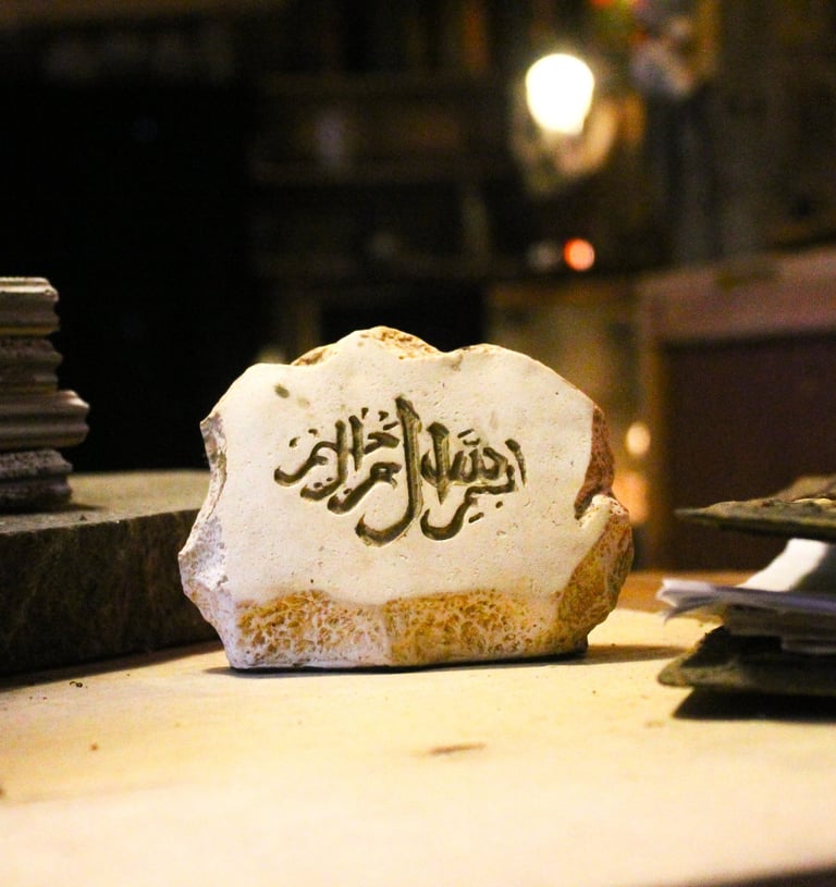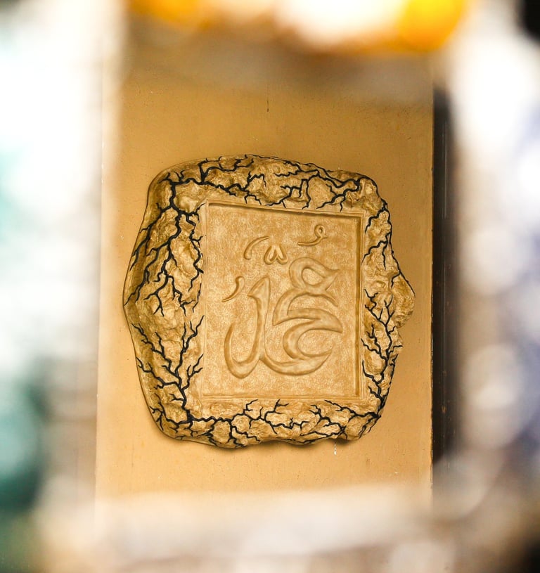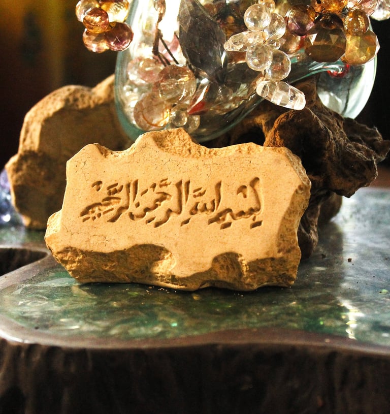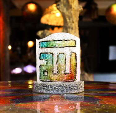 A sculptural resin piece engraved with the sacred Names of Allah.